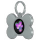 This awesome pet tag features a photograph of a wild Pansy flower. The photo has been artificially coloured resulting in a pansy with glowing pinkish purple petals with green tips petals and a deep blue centre. The background is black to make the flower stand out.