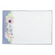 Pretty white pillow case, with a solid blue and green, on the hem area. Beautiful pastel coloured flowers decorate the bottom of the pillow cases hem. Customise to add any text you want. Matching duvet cover and throw pillows available.
