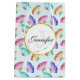 A personalised gift bag with a beautiful pattern. Watercolor butterflies, painted in pastel colours including pink, purple, blue, yellow and green. A light blue watercolor background with hints of light pink. Place your recipients name and monogram letter inside a white circle with a faux-gold foil border.
