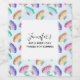 A bottle label with a beautiful pattern. Watercolor butterflies, painted in pastel colours including pink, purple, blue, yellow and green. A light blue watercolor background with hints of light pink.