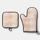 Pretty Peach Pink Cream Plaid Oven Mitt & Pot Holder Set