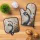 Pretty Peacock Gold Christmas Oven Mitt & Pot Holder Set