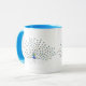 Pretty digital painting of a peacock with its feathers spread, is printed on the both sides of custom mugs.