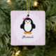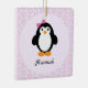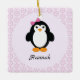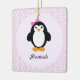 Personalise this pretty penguin with pink floral background ornament with a name or text of your choice.