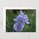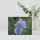 Pretty close-up of Periwinkle Iris with yellow white centre and greenery. Bud on long stem in the background. Original Photography by TamiraZDesigns.