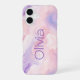 Pretty Personalised Abstract Marble Pink Purple iPhone 16 Case