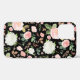 Beautiful pink watercolor flowers phone case set on a trendy black background.