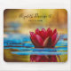 Mousepad with a photograph of a pond with a lovely red lotus flower poking out on top.