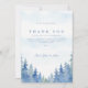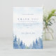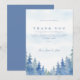 Express heartfelt gratitude with this elegant wedding thank you card, featuring a serene watercolor forest design in soft blue and lavender tones. The card displays a gentle sky background above a border of hand-painted pine trees, creating a tranquil, nature-inspired look. Classic serif and script fonts highlight your message of thanks, making this card perfect for rustic, woodland, or outdoor-themed weddings. A refined choice for couples who want to share their appreciation with friends and family in a memorable, sophisticated style.