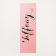 A pretty pink and black fancy yoga mat, this design features a pink ombre background with your name written in large cursive black font. The black font is so dramatic against the soft pink background. The pink ombre background is also on the back. Customise your yoga mat today!
