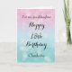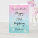 A pretty blue and pink 18th birthday card for granddaughter, daughter, goddaughter, etc. You will be able to easily personalise the front of this beautiful 18th birthday card with her name. The inside card message can also be edited. This would make a great birthday keepsake card for her eighteenth birthday.