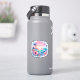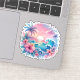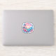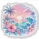 Pretty tropical oasis Sticker. Gorgeous pastel  pink and blue coastal art with palm trees, tropical flowers a sunset and ocean waves. Pretty tropical art to give your home a beachy feel!