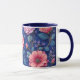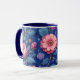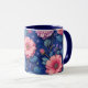 Pretty pink and blue floral pattern mug