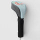 Pretty lady's driver golf club cover done in a robin's egg blue with a tiny polka dot pattern. Graphics of a coral pink flower decoration and banner, decorates the middle of the cover. Personalise the black text, on the banner, to suit your needs. Great gift idea. Chose either driver cover or putter cover.