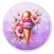 Pretty Pink and Gold Ice Cream Cone Birthday Ceramic Knob