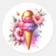 Pretty Pink and Gold Ice Cream Cone Birthday Classic Round Sticker