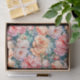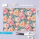 A pattern of pink and peach roses and green leaves that is great for gift wrapping or for decoupage and craft projects.