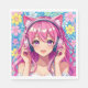 Pretty Pink Anime Girl's Birthday Party Napkin