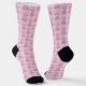 This awesome pair of patterned crew socks features a graphic image of a cute pink baby girl bee with black legs and beady eyes. she has a pale pink fuzzy body with bright pink stripes and cute pink antennae on her fuzzy head. Her delicate little wings have a pale blue mottled pattern on them.