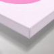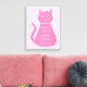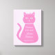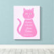This awesome canvas print is designed for a nursery. The design features a digital art image of a pretty pink cat with a curly tail. Her eyes are pale pink with black pupils and she has long black eyelashes. She is wearing a pink bow in her hair and a beautiful pearl necklace around her neck.