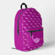 This awesome backpack features a digital art image of a pretty and magical pink baby girl Narwhal. The main body of the Narwhal has a rough texture and is bright pink while the belly is a paler shade of pink. The Narwhal has a black eye with a pale pink pupil and a shiny gold horn on its face. It also has a delicate tail and flippers.