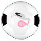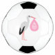 This awesome soccer ball features a graphic image of a cute white Stork with black tail feathers holding onto a pale pink bundle of blankets. There is pink text on the bundle that says "Baby Girl". This design is perfect for celebrating a baby girl.