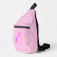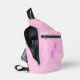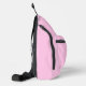 This awesome sling bag features a digital art image of a pretty magical pink baby girl unicorn. The main body of the unicorn is pink and the mane and tail are two different shades of pink. The unicorn has golden hooves and a bright shiny gold horn on top of its head. It has a pink diamond shaped eye. The unicorn has a big smile on its face.
