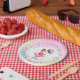 Girl's Birthday party personalised paper plates. A cute little ballerina in a pink tutu holding birthday balloons and gift.