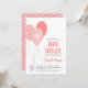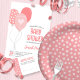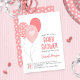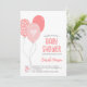 These sweet invitations feature a digitally illustrated bunch of three balloons in shades of pink with polka dots and hearts as decorations.