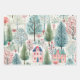 Pretty Pink Blue Green Village Trees Wrapping Paper Sheet