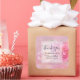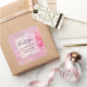 Party favour thank you stickers with a photograph featuring a bouquet of pink carnations. Set on a dreamy ethereal background.