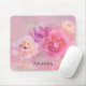 A mouse pad with a photograph featuring a bouquet of pink carnations. Set on a dreamy ethereal background.