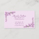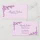 A branch of pretty pink cherry blossoms against a pink background adorns the corners of this business card.