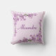 A branch of pretty pink cherry blossoms against a pink background adorns the corners of this customisable pillow.
