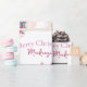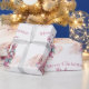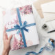 This custom wrapping paper features a pretty pink Nutcracker Christmas theme on a plain white background. Characters from the Nutcracker story are pictured around a pink coloured Christmas tree. The Sugar Plum Fairy ballerina is pictured on the left, and the giant Nutcracker and Mouse King are pictured on the right. A sample "Merry Christmas" greeting is printed above the illustration, followed by a sample name which you can personalise to include your own custom name or text.