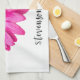 Pretty pink daisy flower custom name tea towel
