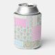 A chic Can Cooler, with a pretty, nostalgic faux patchwork pattern of pink Dogroses on a sky blue background with matching polka dots, stripes and plaids. Part of the Posh & Painterly 'Rosy Posy' collection.