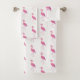 Pretty pink flamingo, fuchsia and white bath towel set