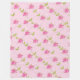 Designer pink fleece blanket. Floral design with lime green. Pretty home decor.