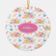 Add a beautiful feminine touch to your home holiday tree decor with this watercolor floral Christmas ornament. Ornament has a pattern of pastel pink, blue, and yellow roses. Add a name and monogram initial for a personalised touch, or go into the personalisation area to remove. On the back there is a place for your custom holiday greeting and the year.