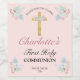 Pretty Pink Floral Gold Cross First Communion Wine Label