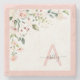 Pretty Pink Floral Script Monogram Initial Name Stone Coaster