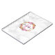 A spiral notebook designed with a floral wreath made with pink and orange flowers and twigs, sprigs and leaves. This digital image was originally created with watercolors and is cute and trendy. The background is an image of elegant white marble. Personalise with a monogram initial and name.
