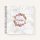 A square spiral notebook designed with a floral wreath made with pink and orange flowers and twigs, sprigs and leaves. This digital image was originally created with