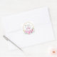 Pretty and girly pink, purple and green floral watercolor wreath "thank you" square sticker for a baby shower. This whimsical sticker has a white background and elegant dark grey and hot pink text. Personalise by adding your own name and baby shower date. You can even change the text colour and font style using the customise option.