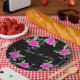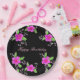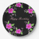 Bright pink flowered paper plates in black, personalise the light pink happy birthday text to suit any special occasion, or text is removable. Ideal for Easter, baby shower, wedding celebration, anniversary or picnic lunch. The black background can also be changed to any colour of your choice.