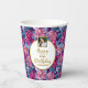 Make your event extra special with these paper cups featuring a photo and 4 lines of custom text highlighted by a faux gold ring and set against a pretty pink and purple floral pattern. Perfect for a birthday, bridal or baby shower, retirement party, graduation, anniversary or any occasion.