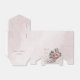 Unique wedding favour box featuring romantic pink flowers and green leaves.