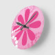Pretty Pink Flowers Cute Retro Daisy Pattern Round Clock
