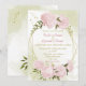 pretty pink flowers greenery geometric wedding invitation